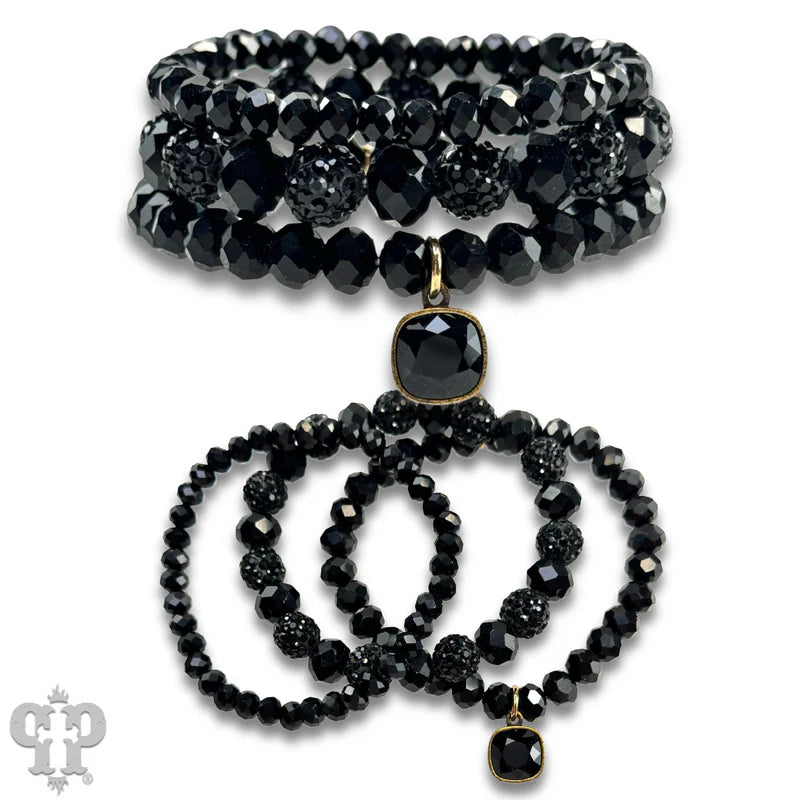Add a touch of elegance to your outfit with our pave ball and glossy glass bead bracelet. Featuring three strands of glossy glass beads, stunning pave balls with an Austrian crystal drop, this accessory will fit any look. One size fits most.