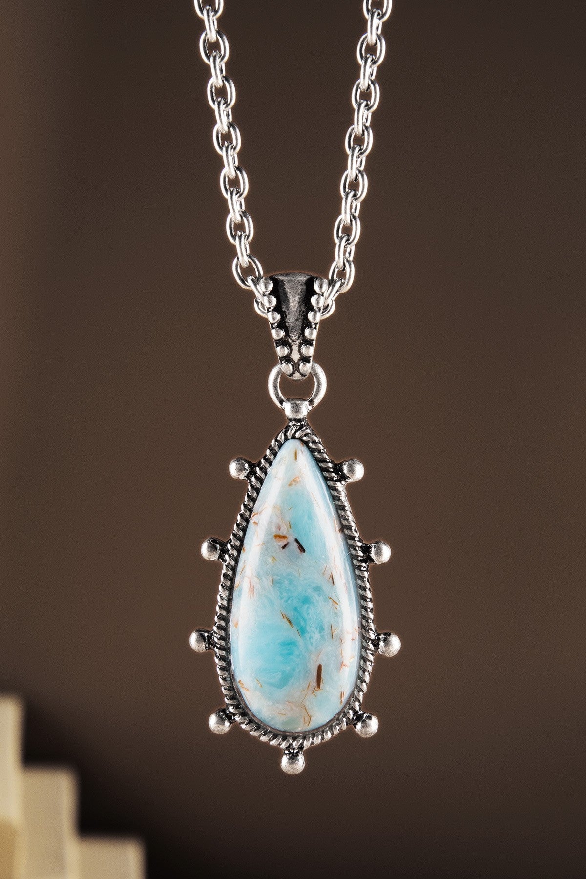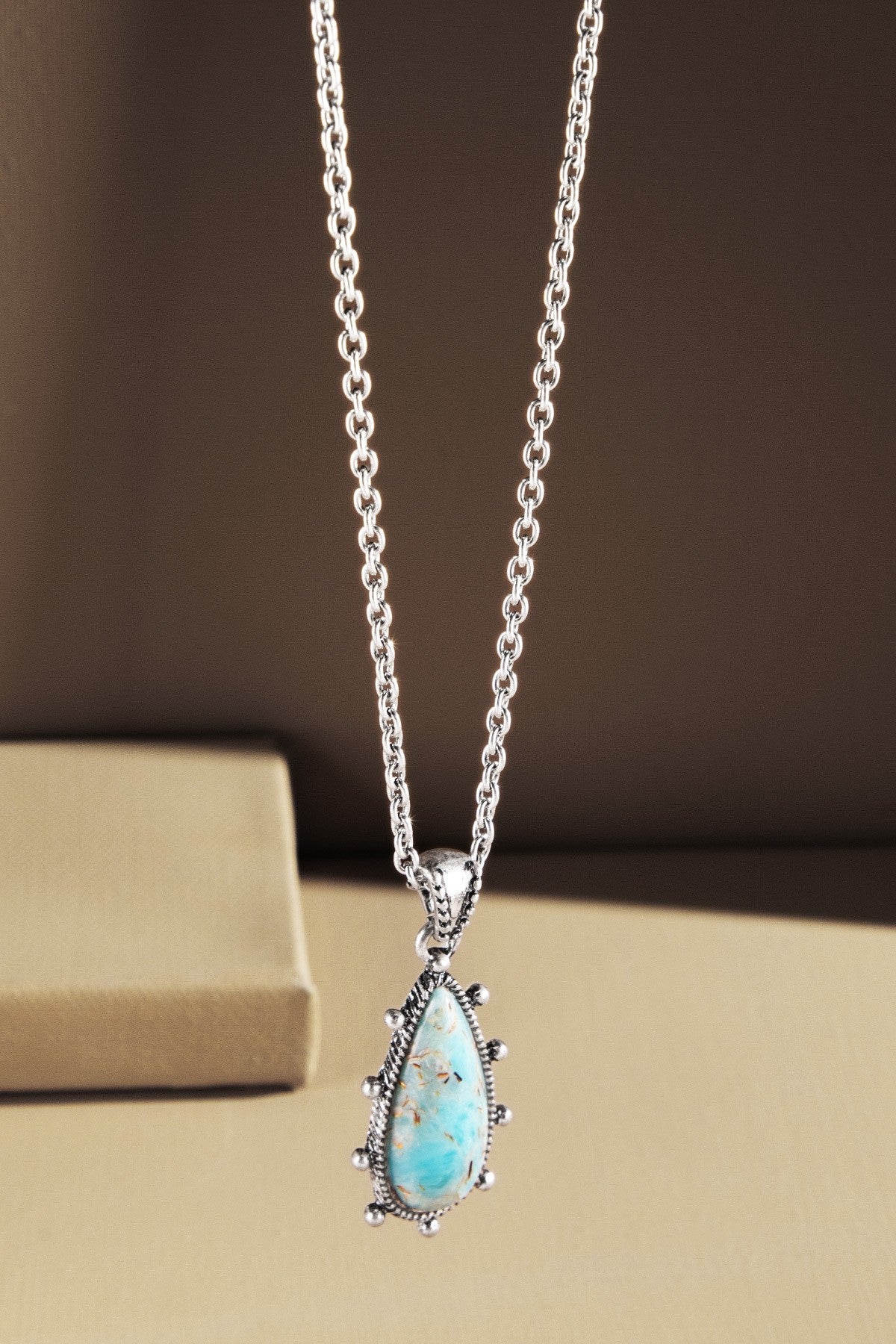 Beautiful western inspired hand stone teardrop necklace with textured edges.
