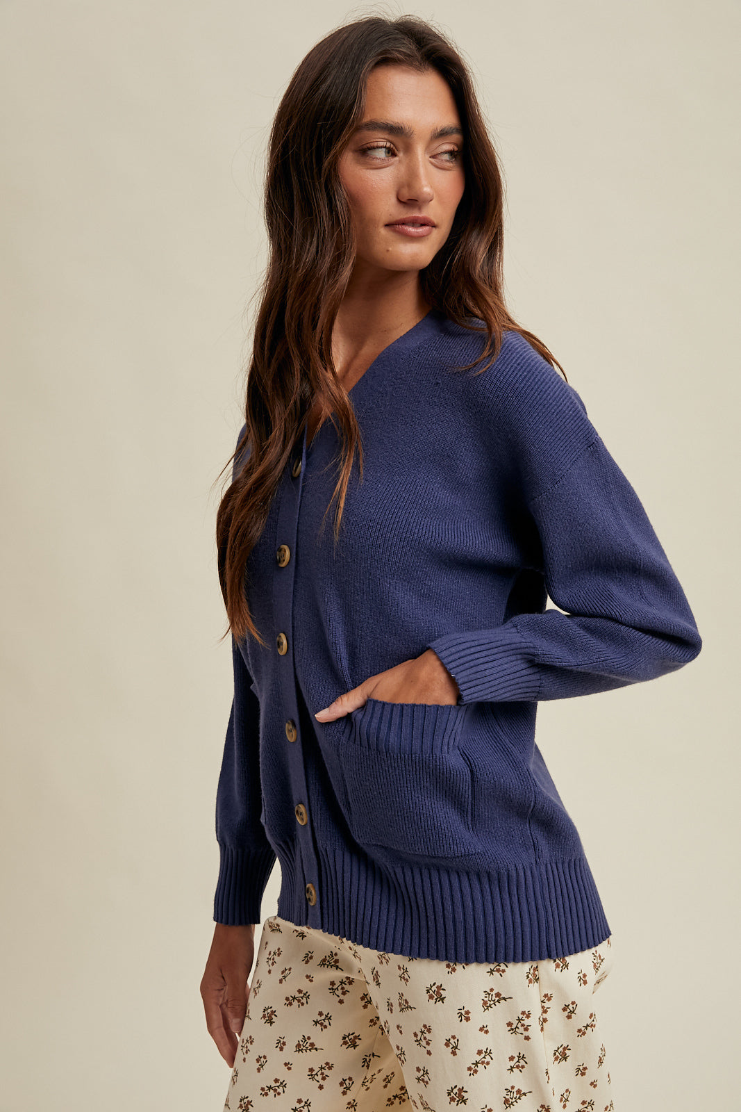 Button-up soft sweater cardigan in fabulous indigo aka navy.