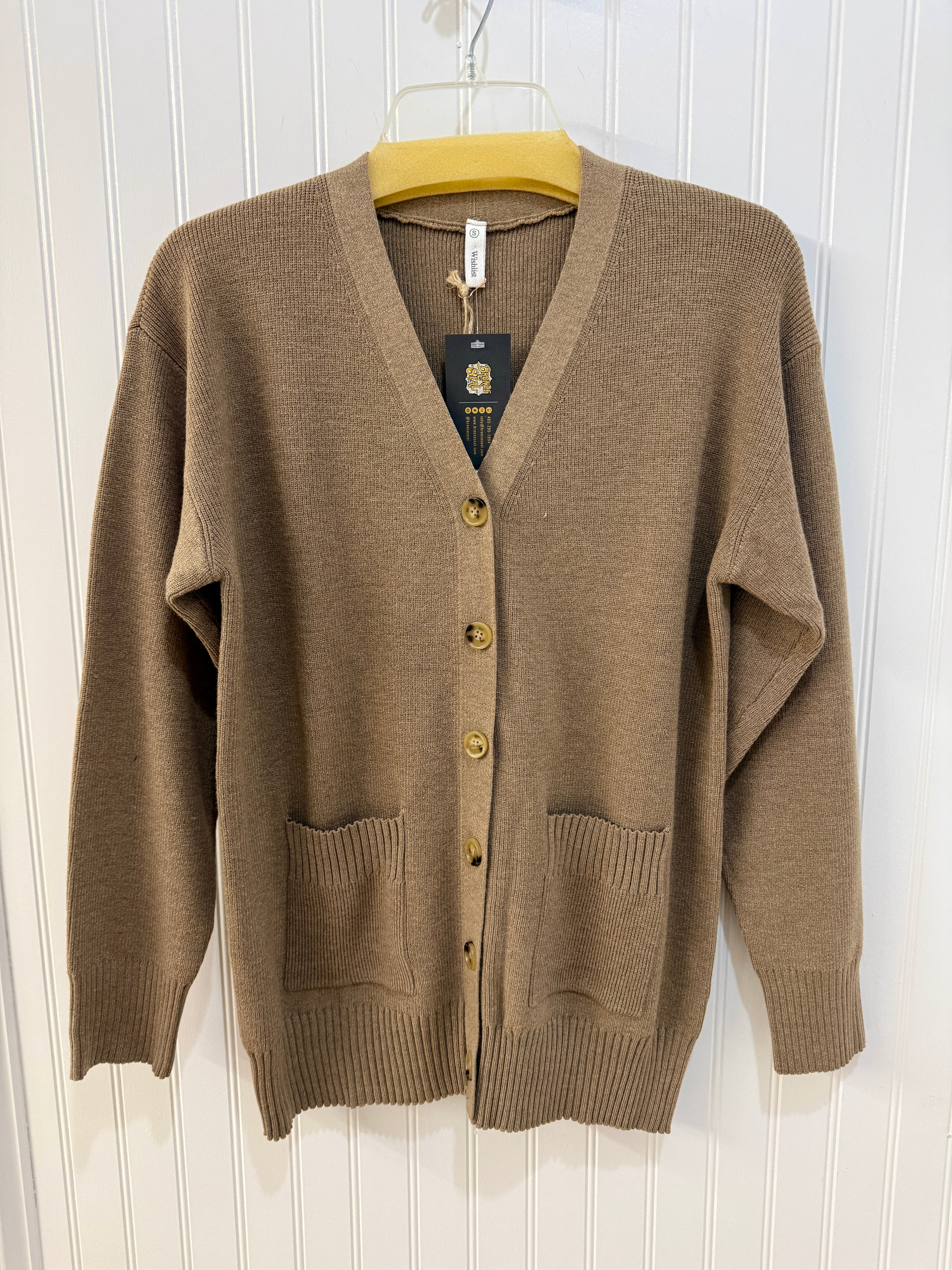 Button-up soft sweater cardigan in fabulous mocha. This color will go with everything Fall.