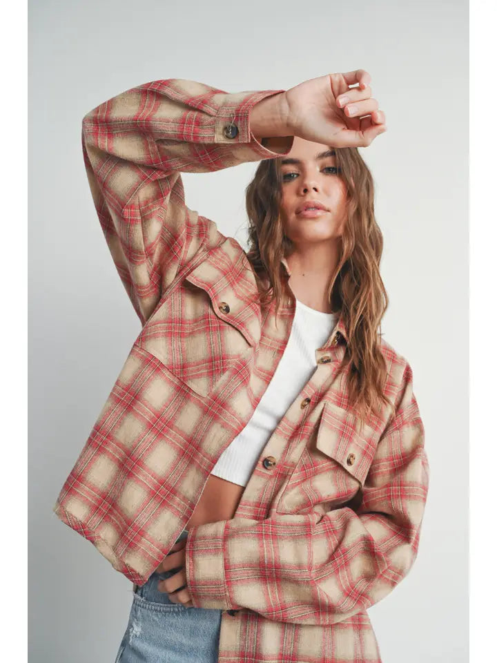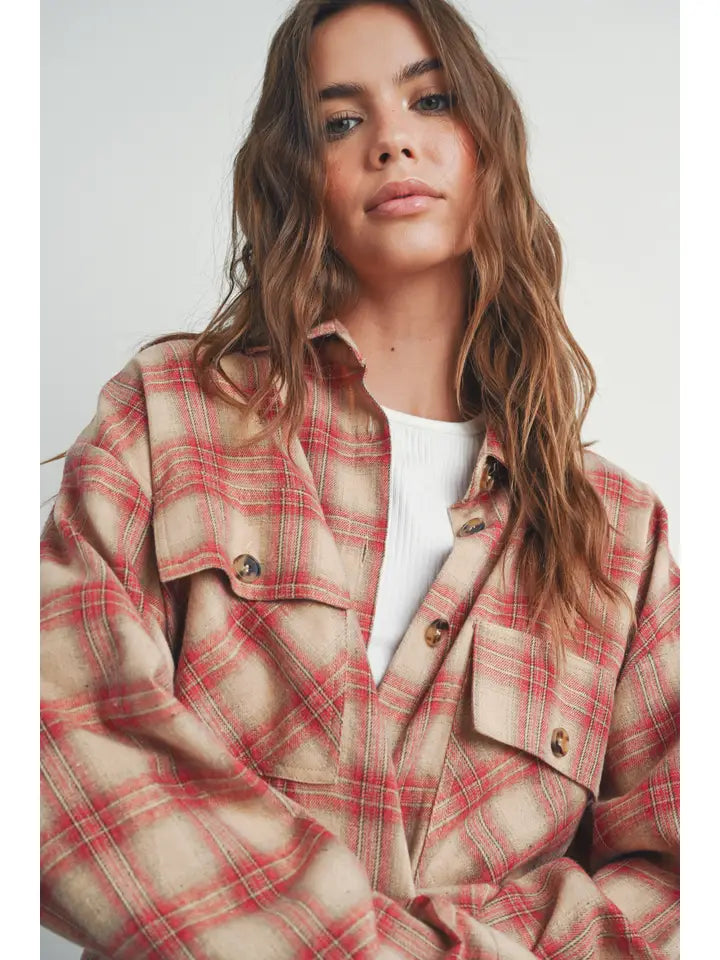 The Red Plaid Long Sleeve Shirt Jacket is a stylish and versatile garment perfect for various occasions. Crafted with a classic plaid pattern, this shirt jacket combines the comfort of a shirt with the warmth and functionality of a jacket. It features a button-up front closure, long sleeves, and a shirt collar for a timeless look. Made from high-quality materials, it offers a balance of durability and comfort. Whether worn as a lightweight jacket or layered over a shirt, this Red Plaid Long Sleeve Shirt Jacket adds a touch of sophistication to any outfit. 100% COTTON