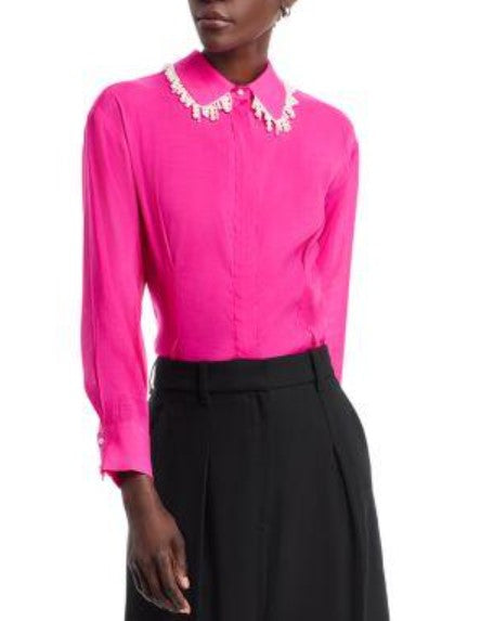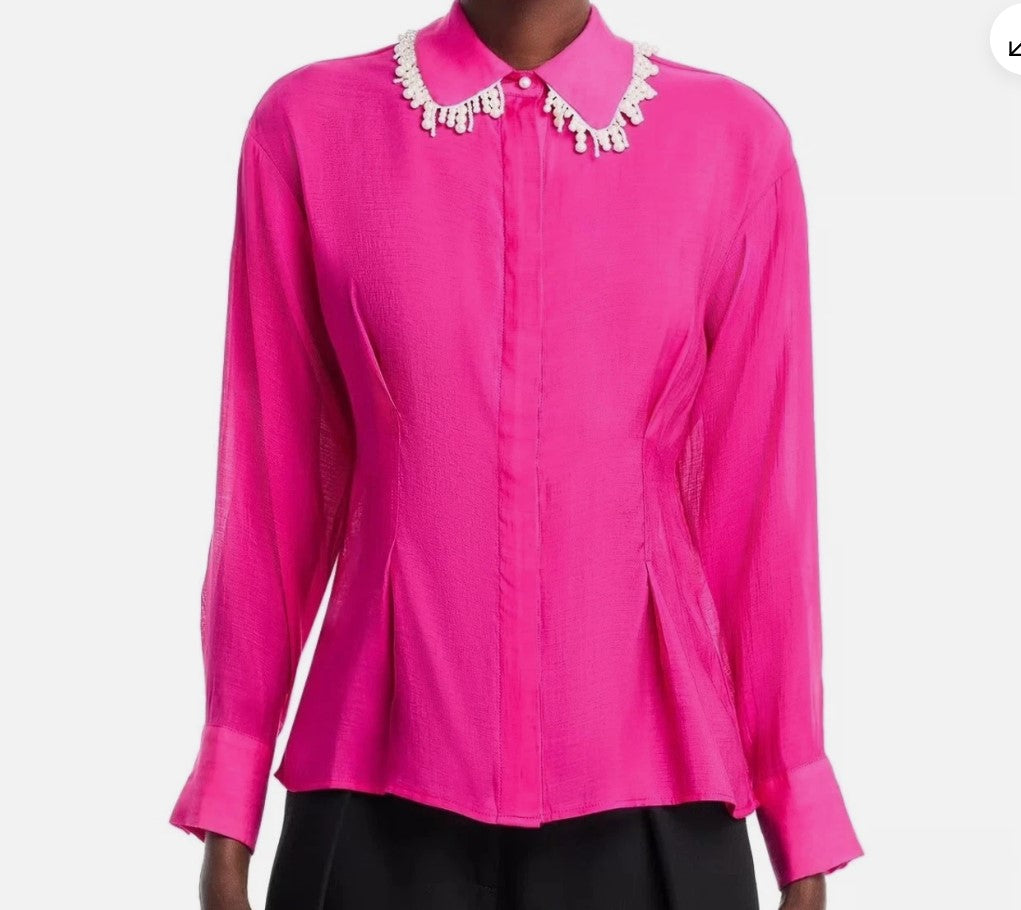 Elevate your style with this stunning pink top. Featuring elegant embellishments, it's perfect for any occasion. New with tag. $108