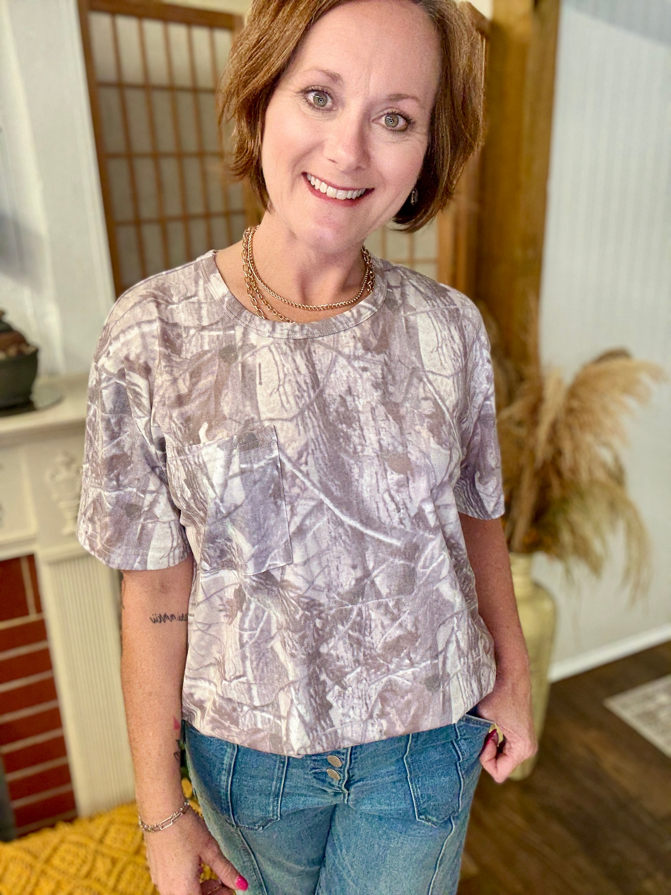 Camo is so trendy - so you better hop on the train!  This grey camo slightly oversized tee is the perfect piece to add to your wardrobe!