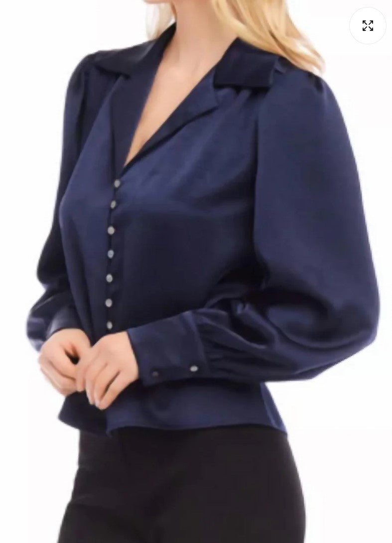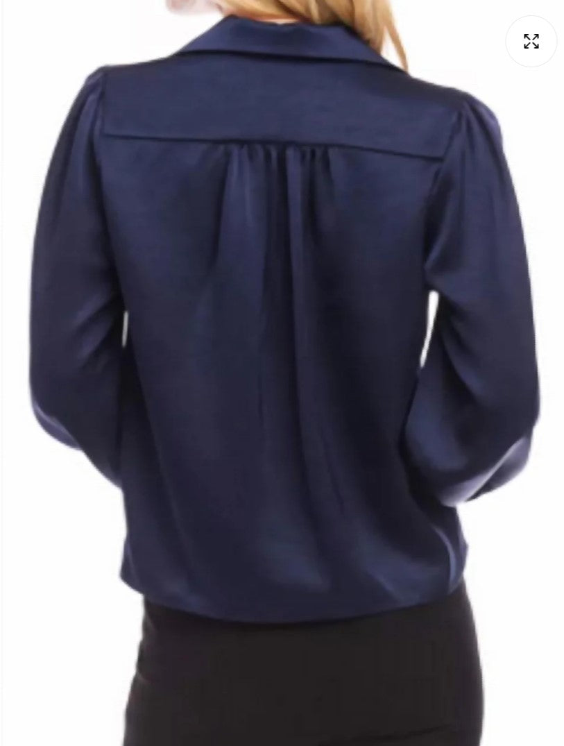 Elegant satin blouse with button-up front. Rich navy color.