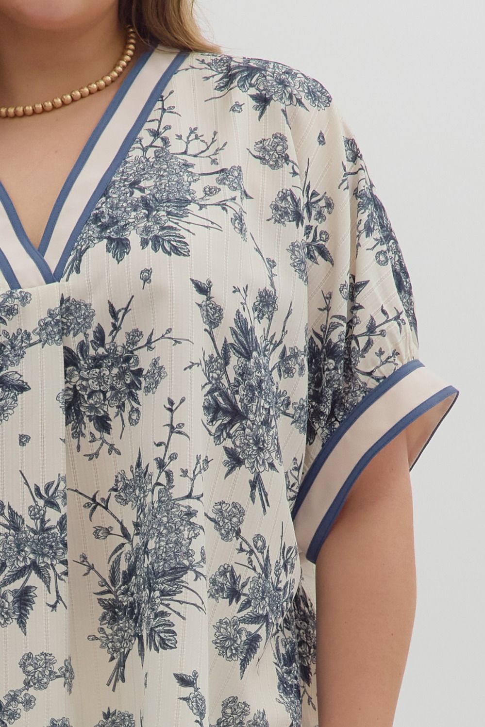 Floral print oversized pullover short dolman sleeve top featuring multicolor band.