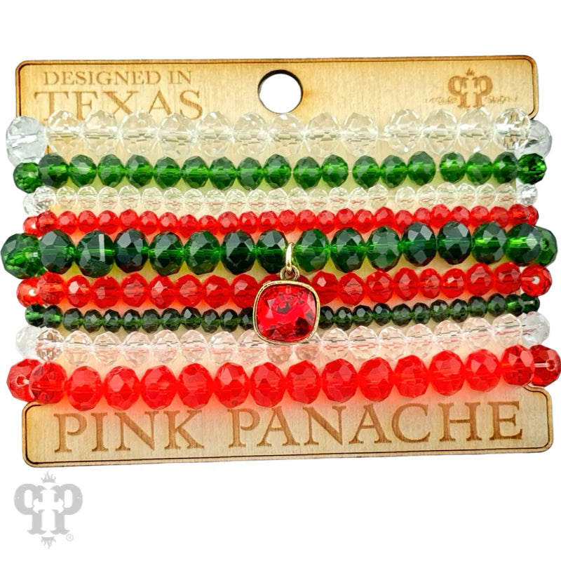This bracelet set has nine strands of color beads in a variety of sizes.