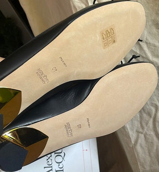 Alexander McQueen Black leather Flats ballet with Metallic Heel