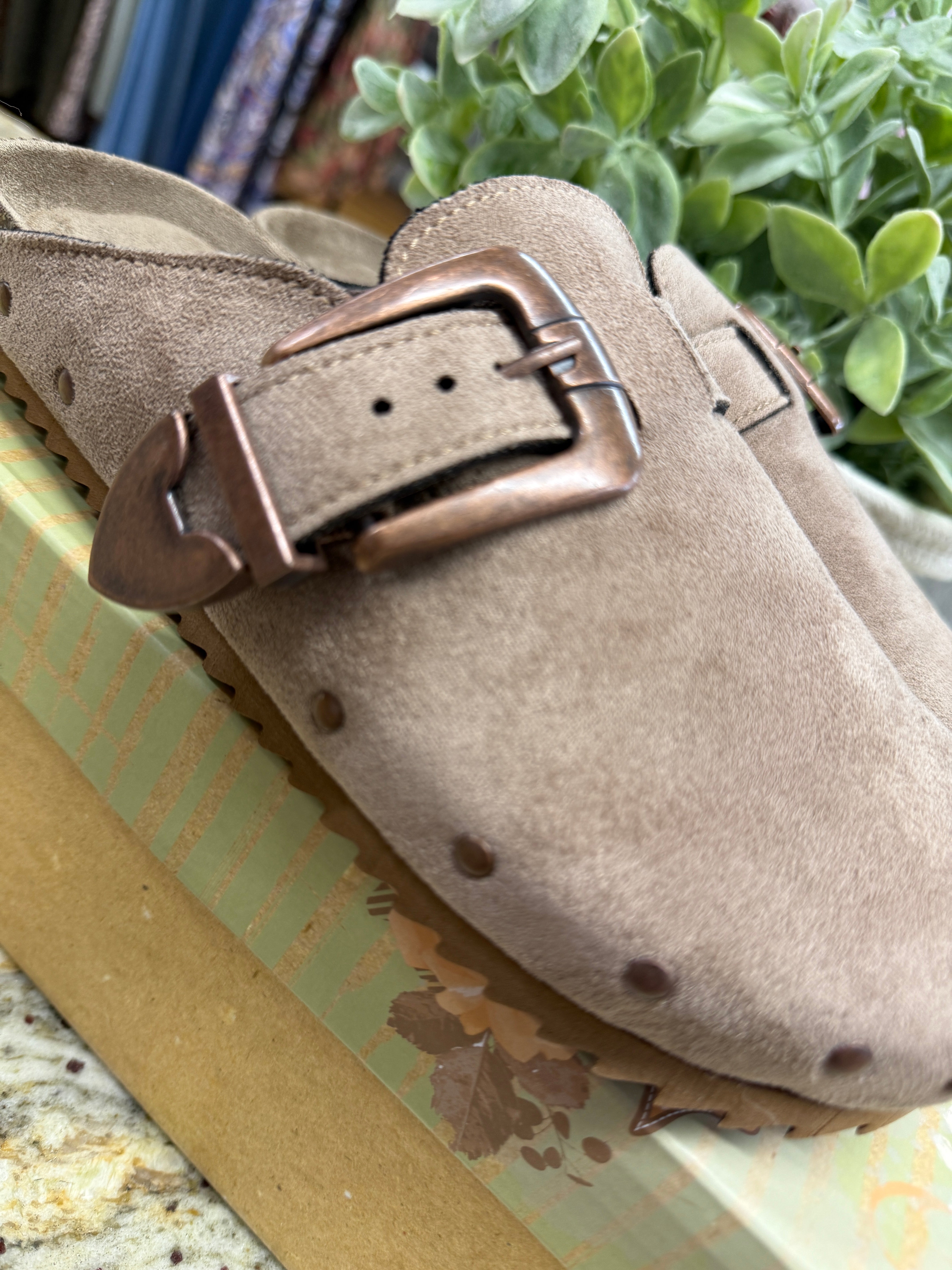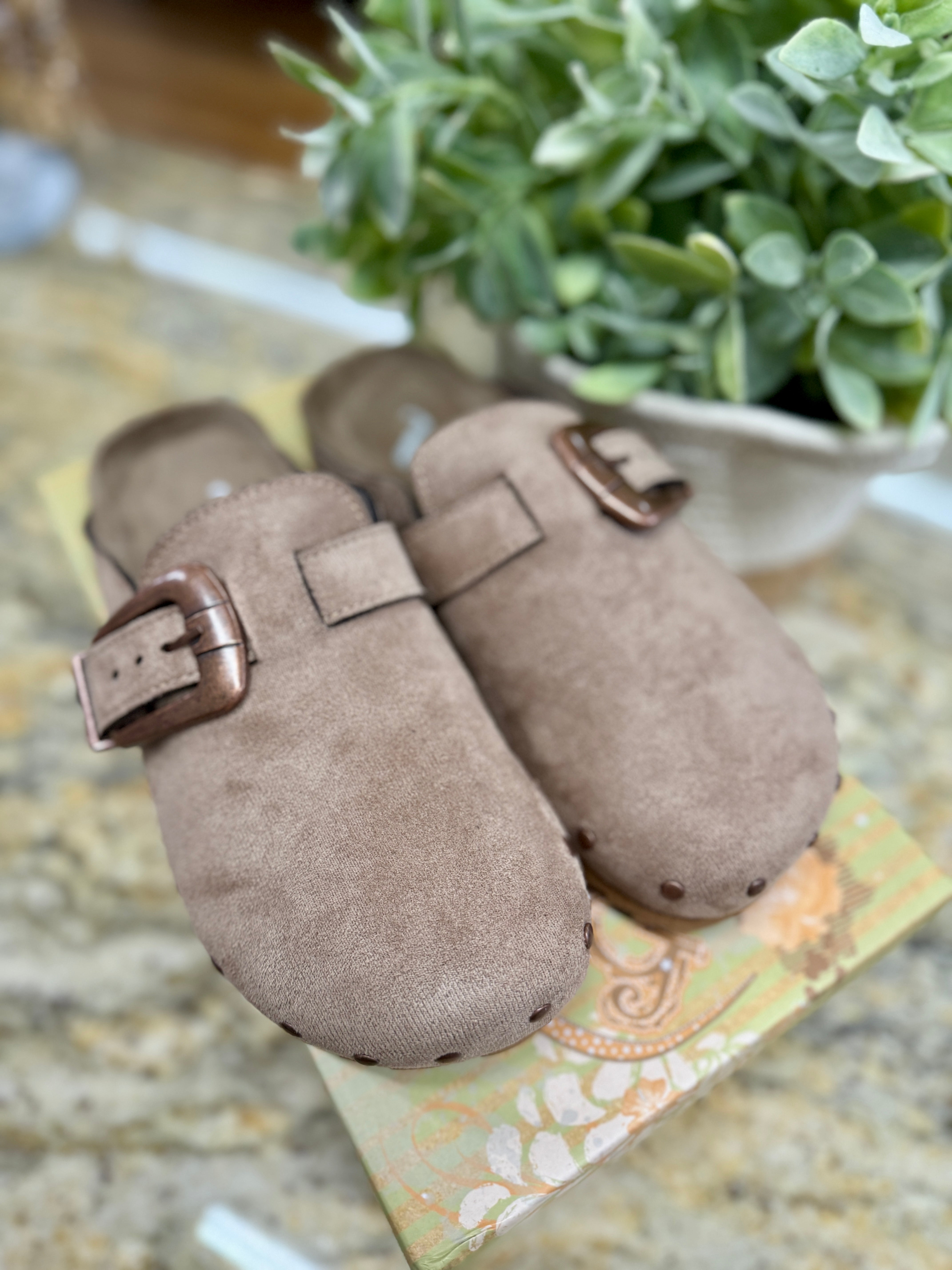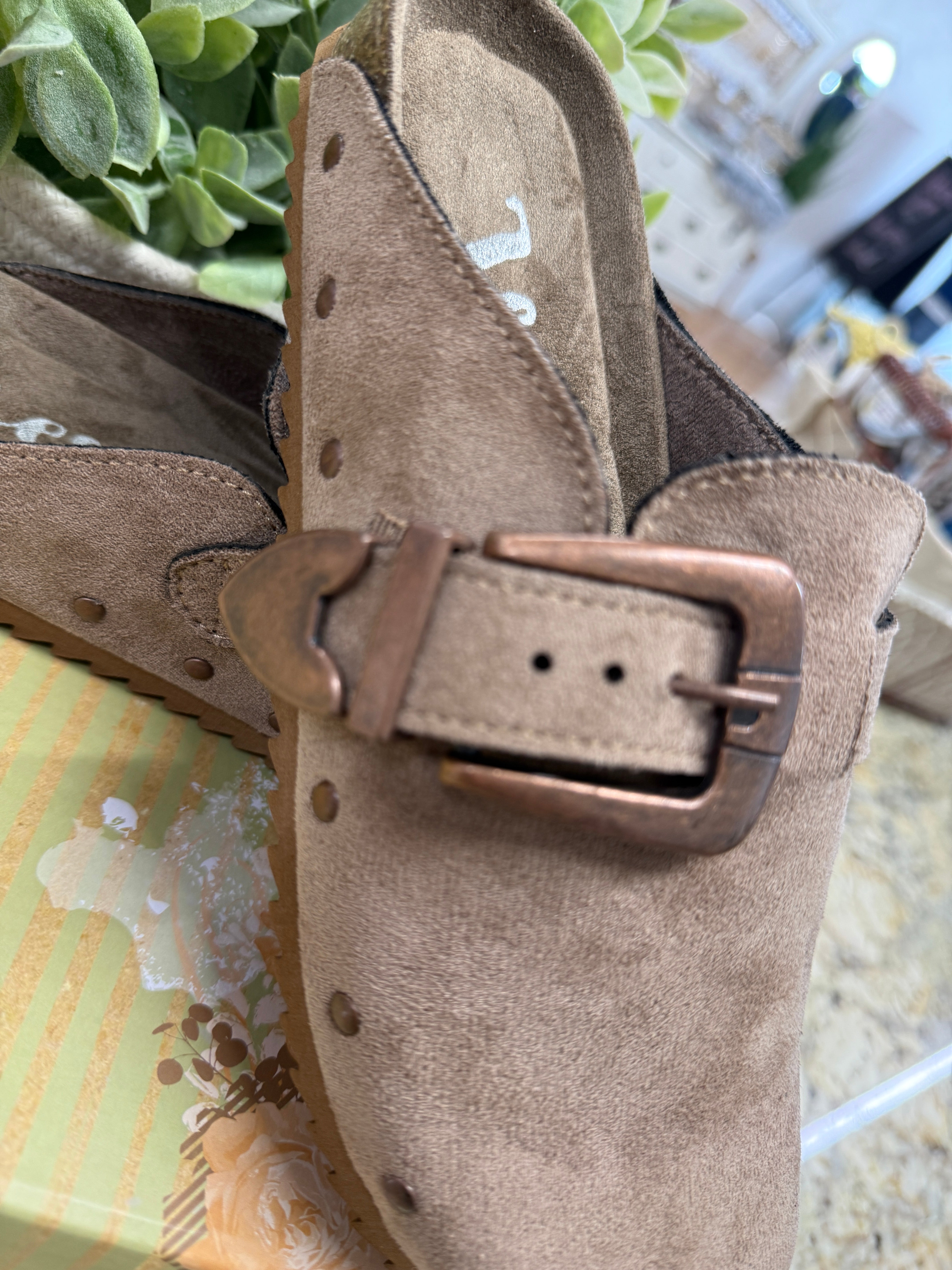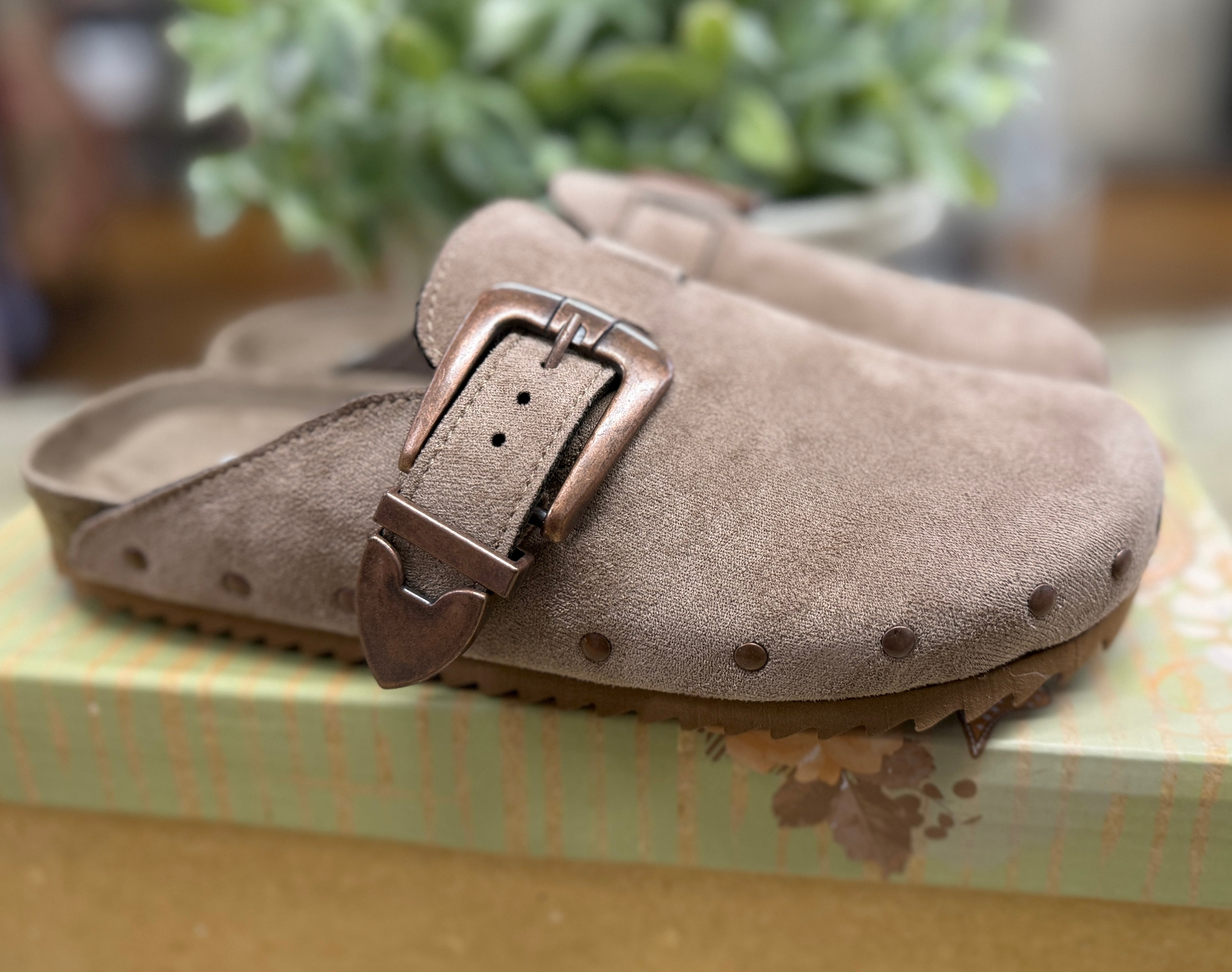 Step into playful comfort with the Very G: Boston Clog. This slip-on clog features a studded buckle detail that adds a fun edge to your look. Crafted from soft faux suede, it offers cozy wearability with a trendy twist. Perfect for adding a bit of charm and ease to everyday outfits.