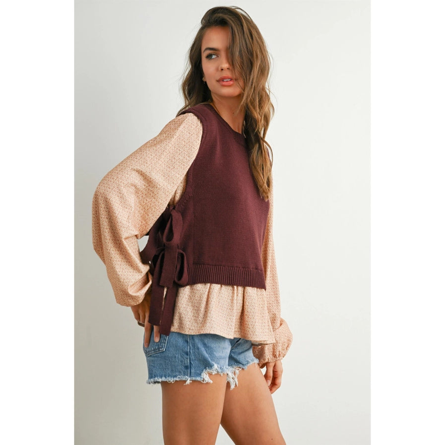 Charming and cozy, this side ribbon-tied knitted top adds a playful twist to a classic silhouette. Featuring soft knit fabric and delicate side ribbon ties, it offers both comfort and feminine detail. Perfect for pairing with jeans or skirts for a sweet, stylish look.