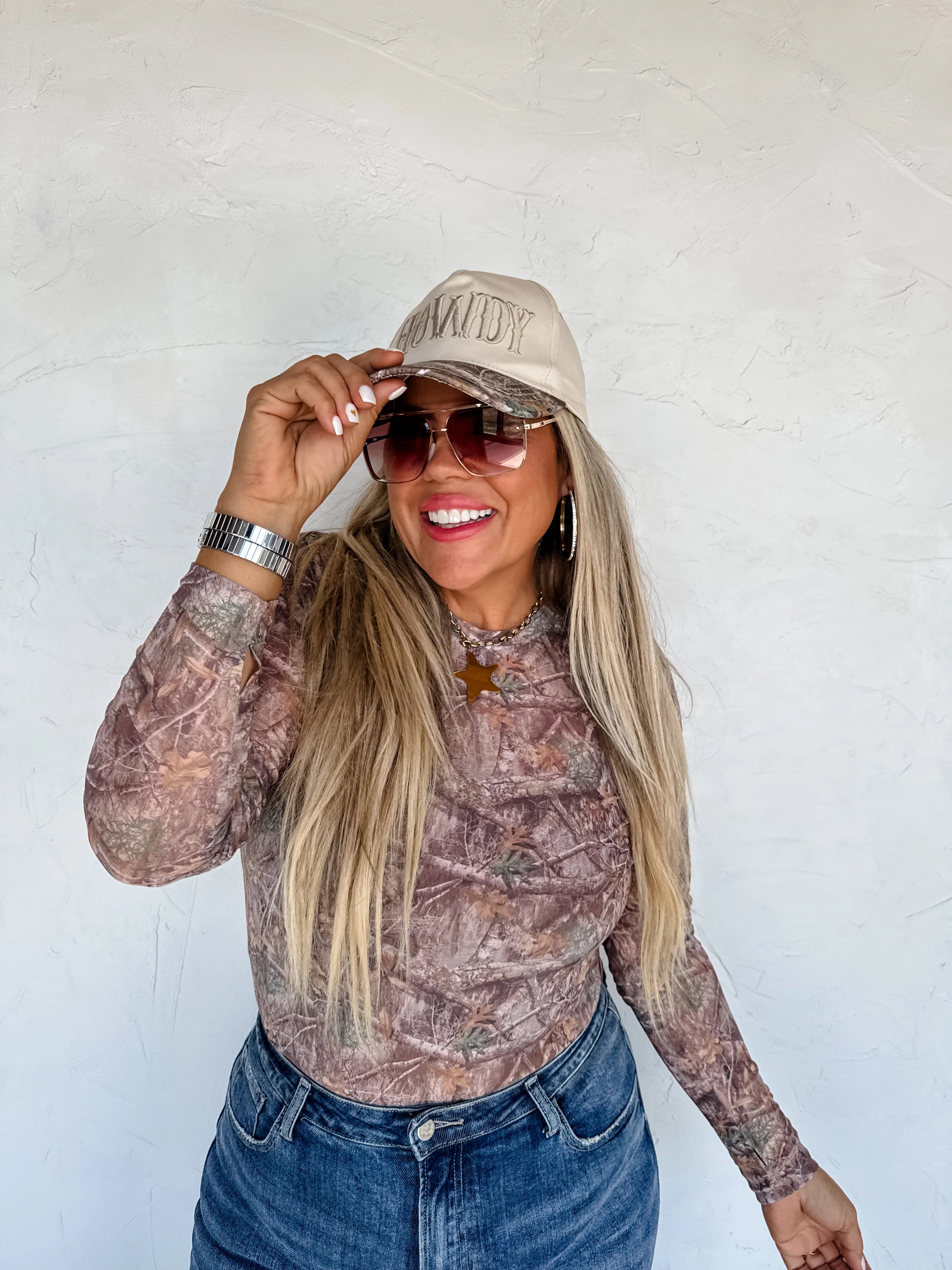 Stretchy mesh print long-sleeve top features a totally sheer design. Perfect for layering or worn alone. Pairs great under graphic tees or Cardigans too! Crew neck and thumbhole details sleeves.