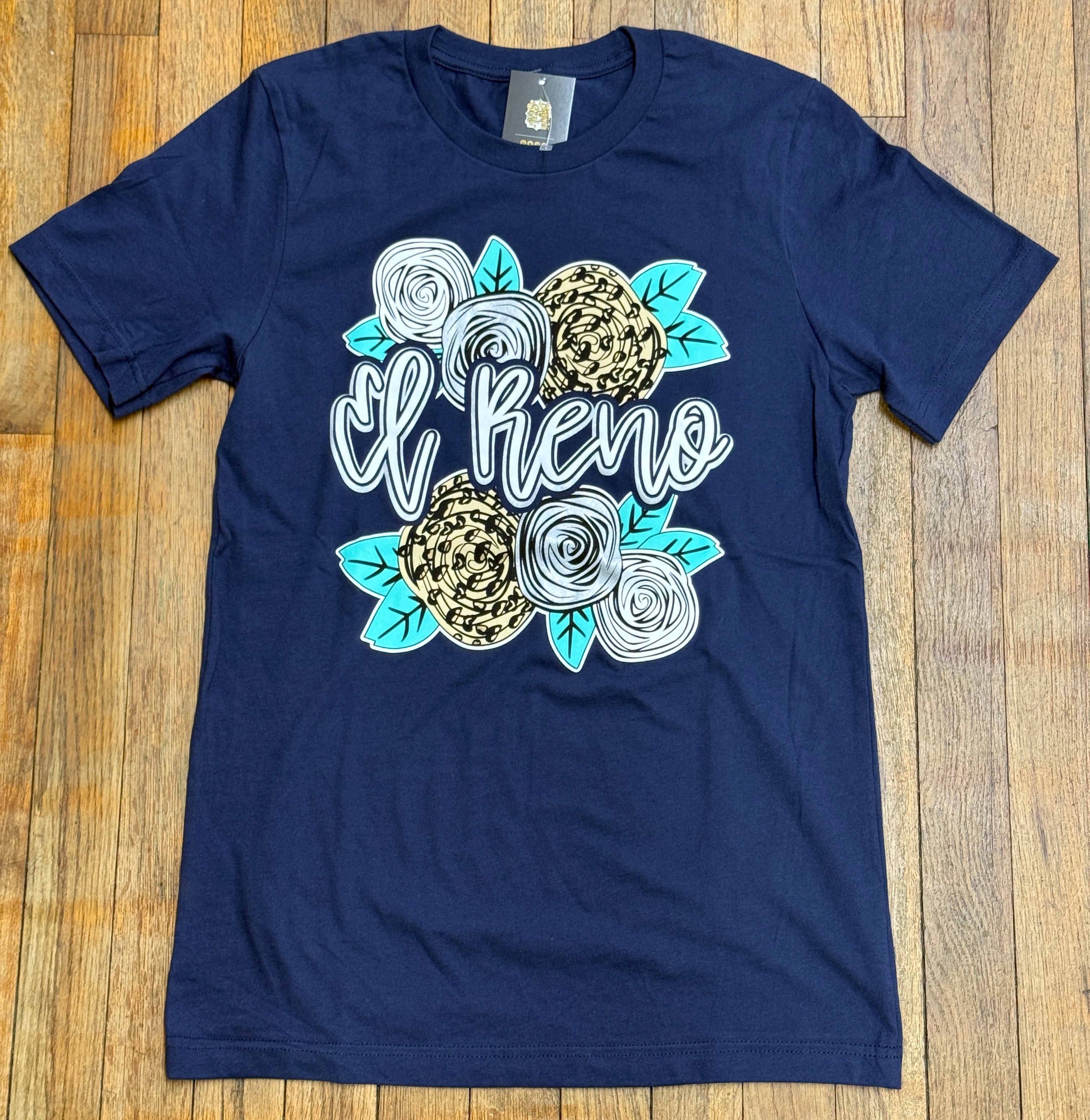 Printed on a soft Bella Canvas Navy tee.