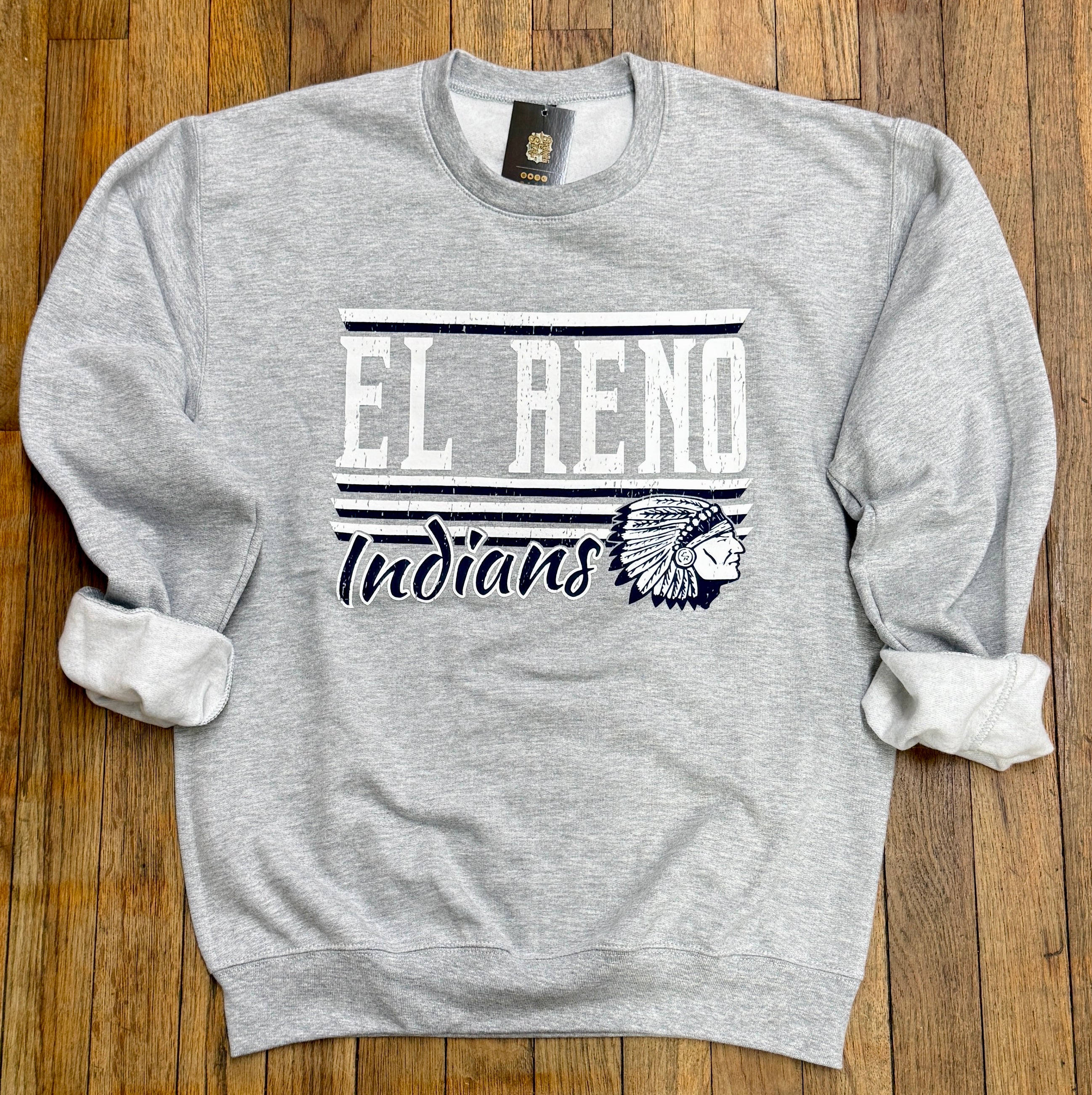 Stay warm, cozy and full of team spirit in our new Vintage Stripe El Reno Indians Sweatshirt!