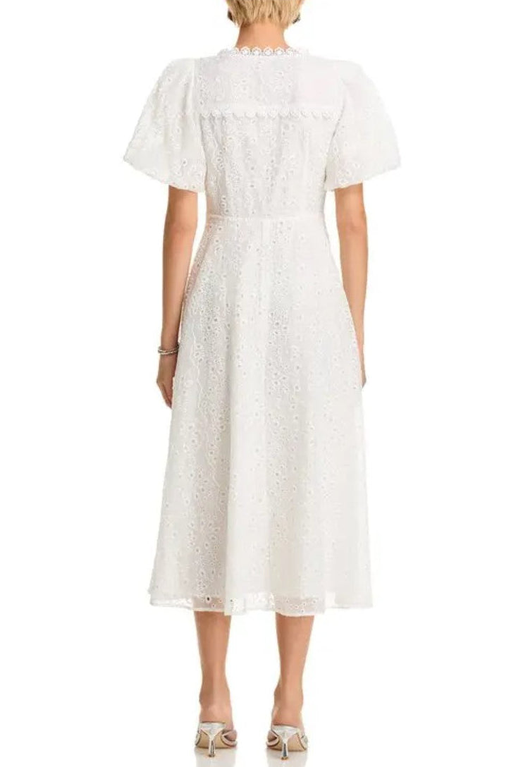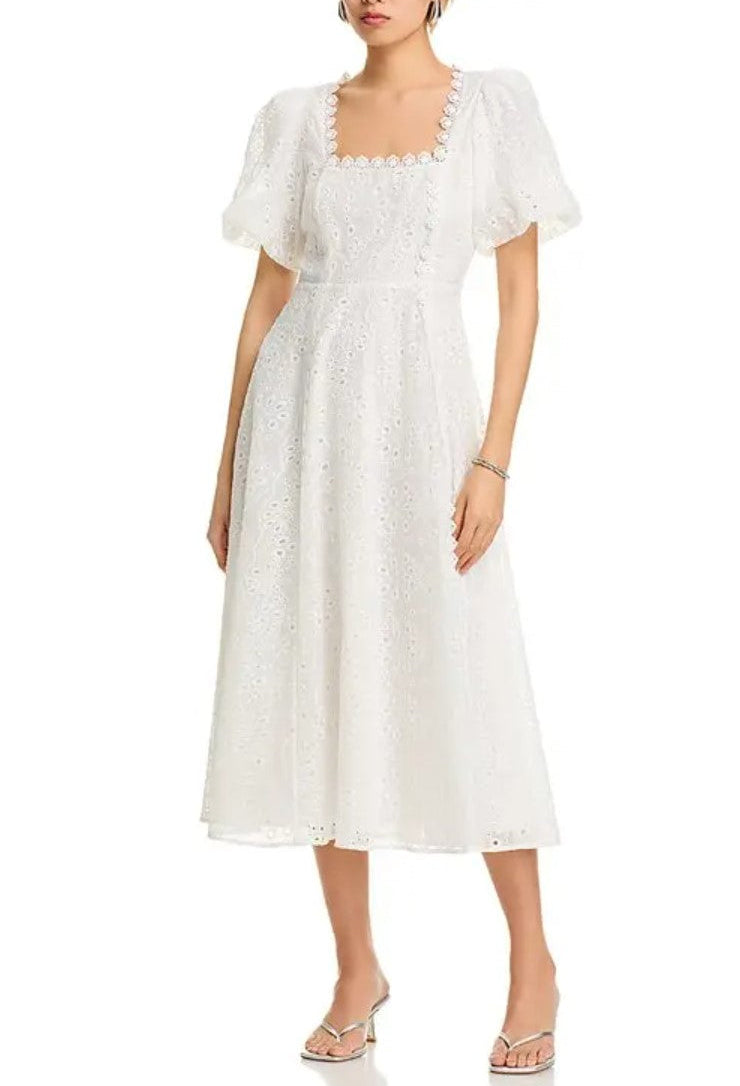 AQUA Lace Trim Eyelet Midi Dress