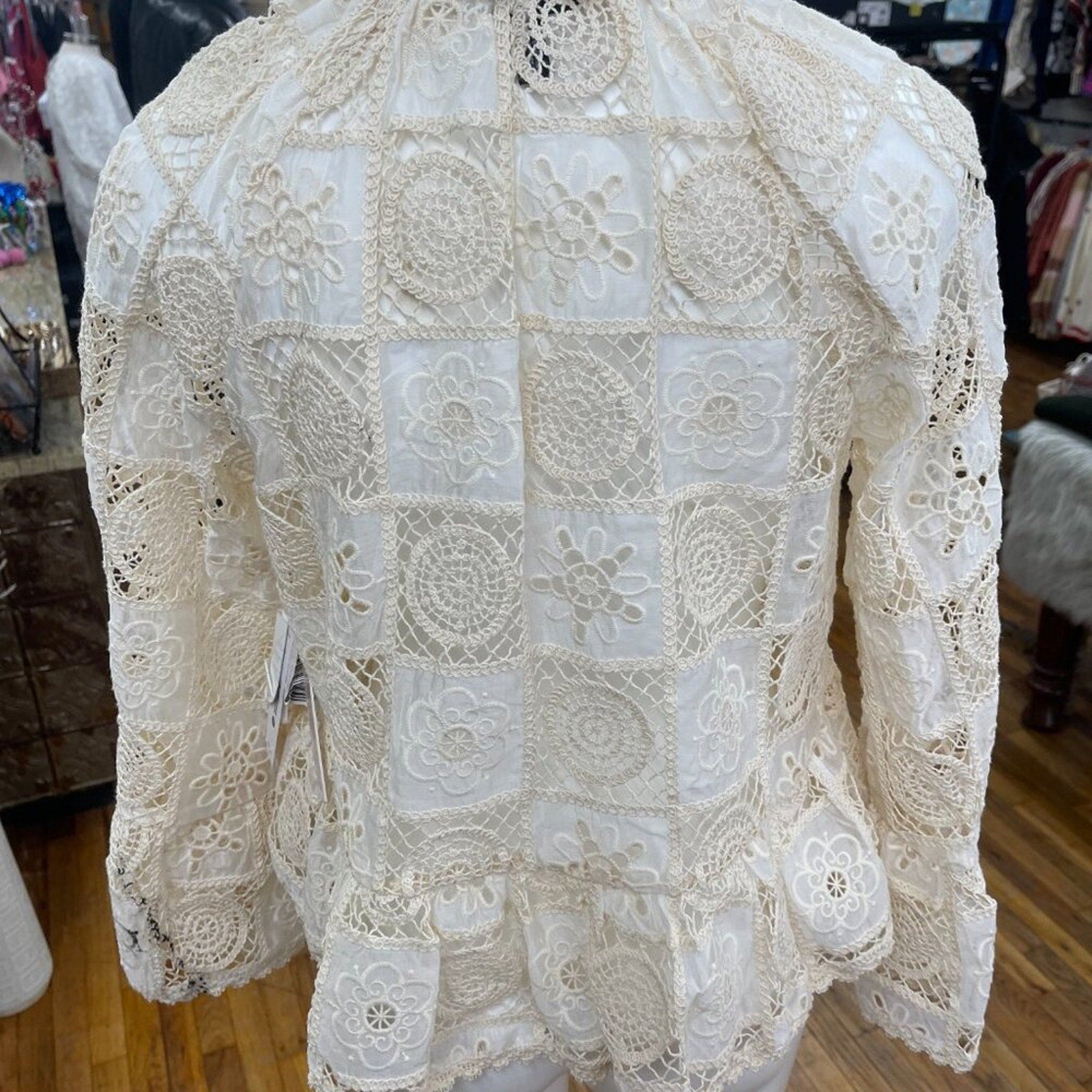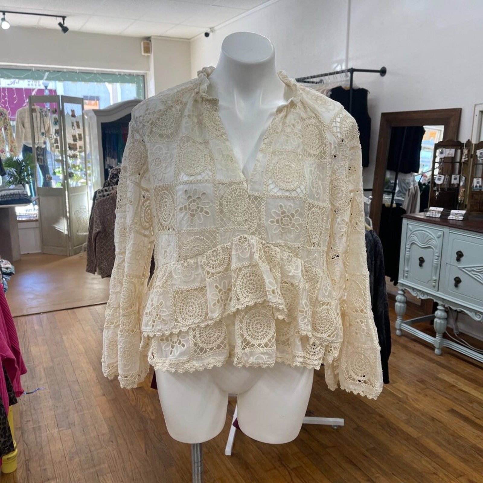This elegant cream lace top is perfect for adding a touch of sophistication to any outfit. The intricate lace design offers a delicate and stylish look. Ideal for both casual and formal occasions.