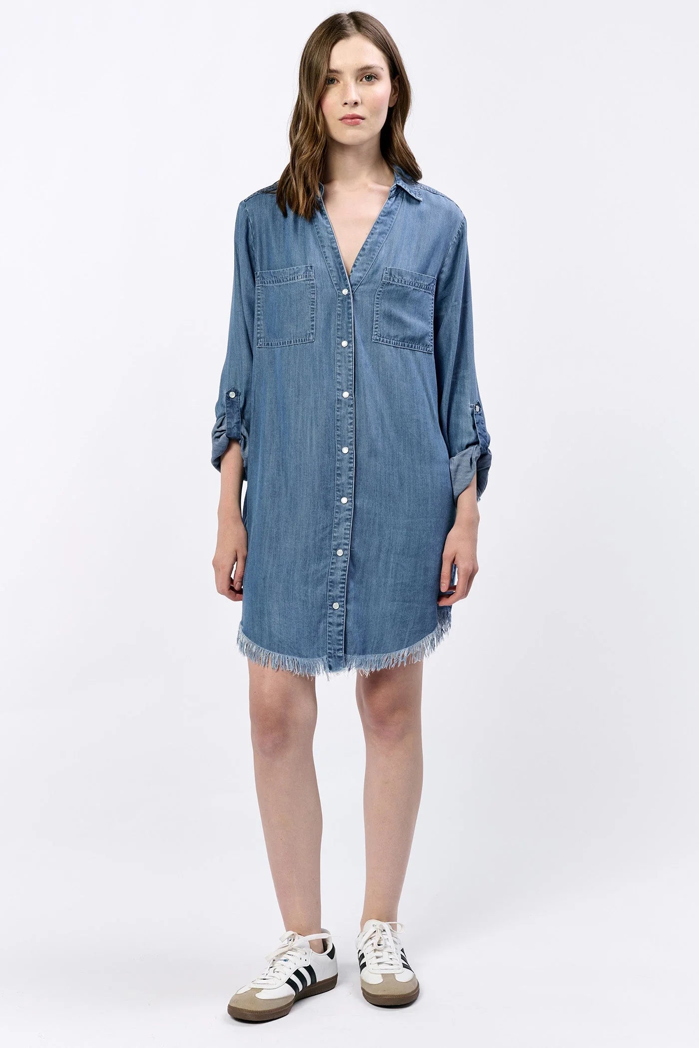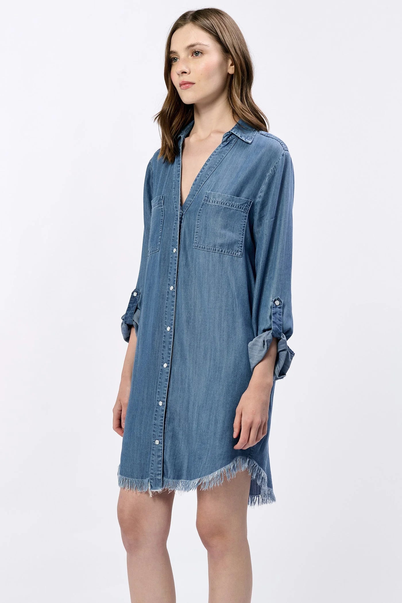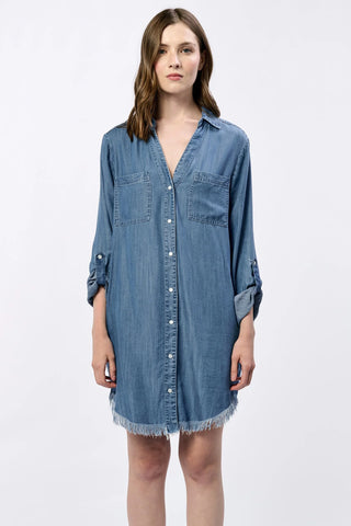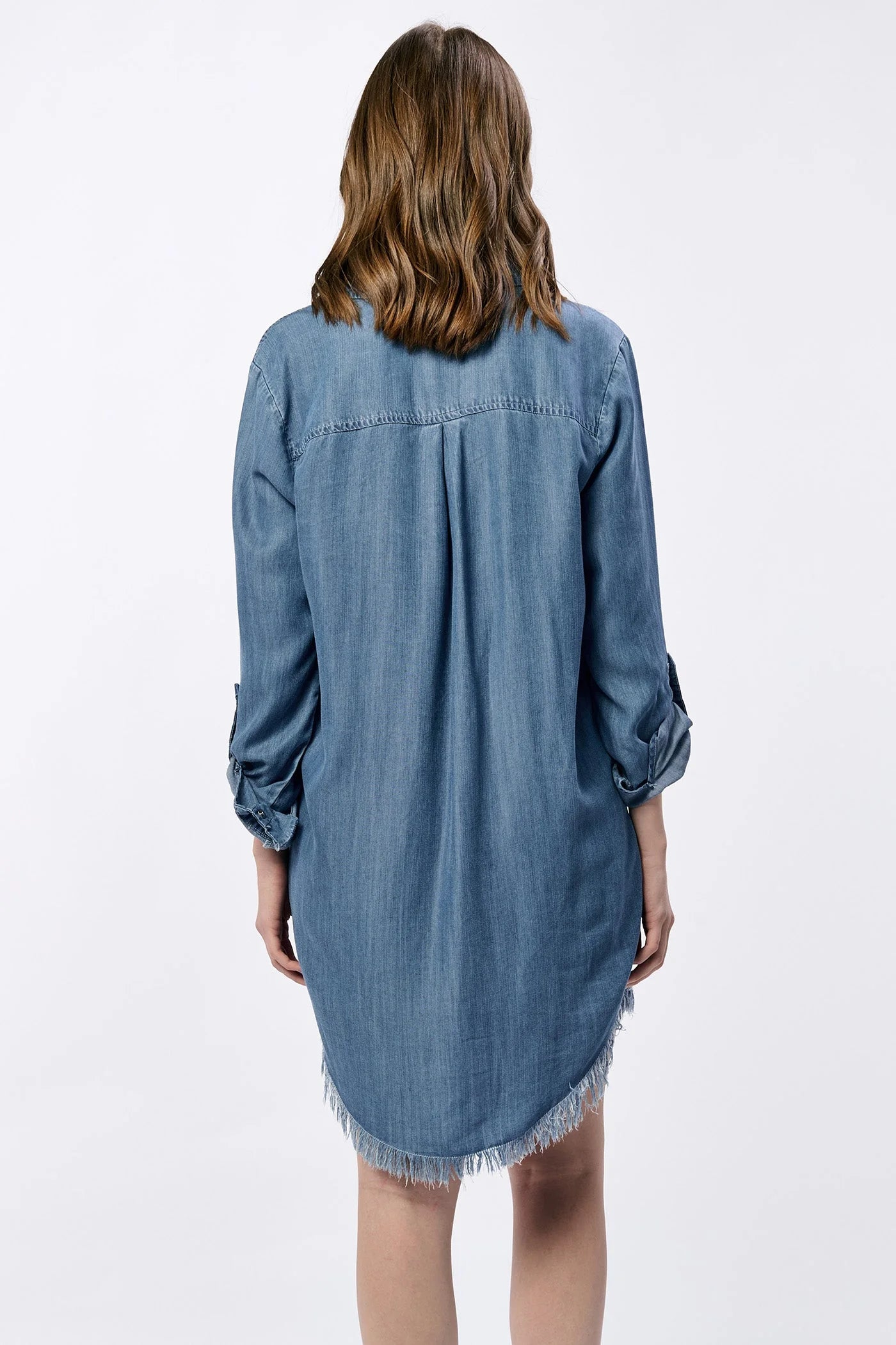 Avery tencel dress in striking blue, crafted for the contemporary appreciating both style and comfort. This versatile outfit is a perfect choice for fashion enthusiasts looking for comfortable clothing. The dress features a classic collared button-up design and long sleeves, offering a polished look suitable for any occasion. Its relaxed silhouette ensures a flattering fit while maintaining all-day comfort. Made with eco-conscious tencel, gentle on your skin but also on the planet. The breathable and soft fabric drapes beautifully, the perfect wardrobe staple for those seeking a blend of casual and chic.