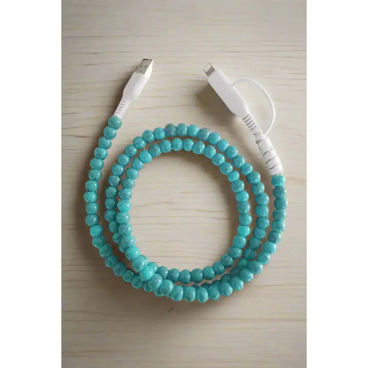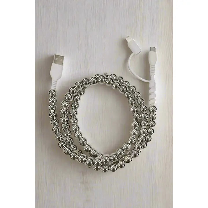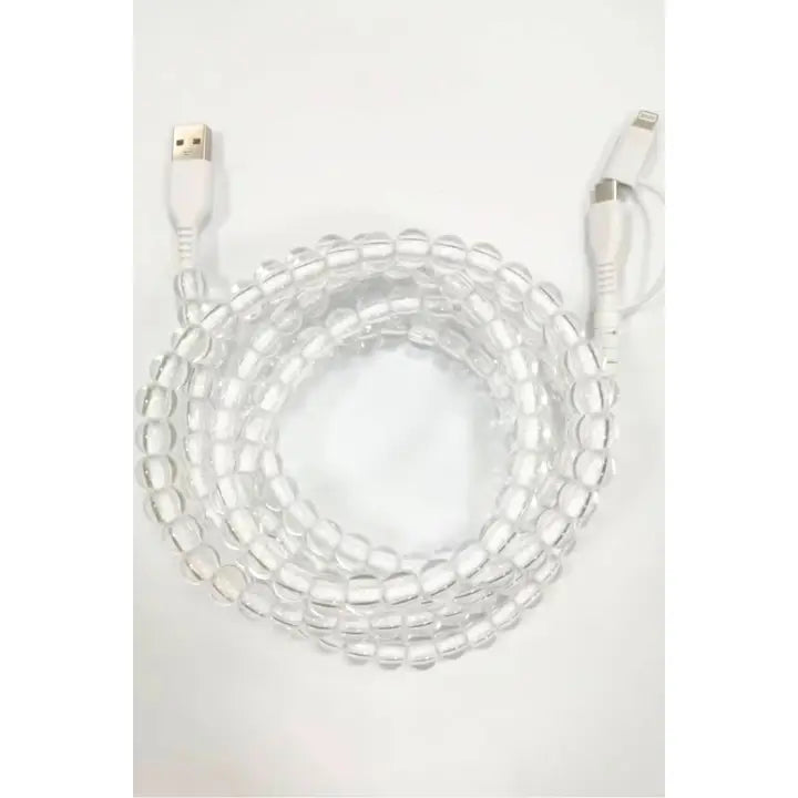 This ultra stylish phone charger makes other tech accessories look basic! Our beaded cord 2 in 1 phone charger is compatible with both iPhone and C type devices. Charge your device quickly and efficiently with this must-have accessory!