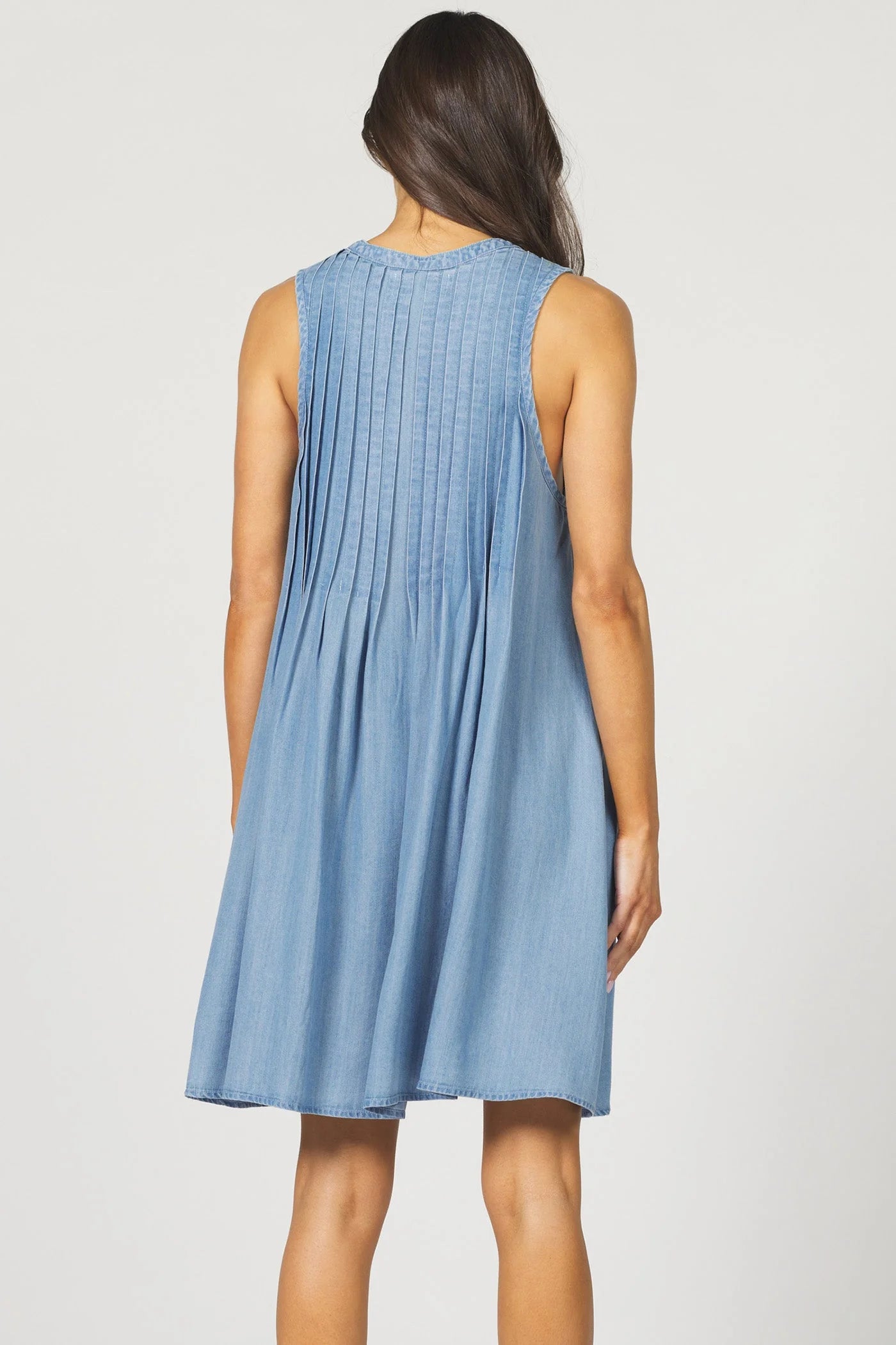 The perfect blend of fashion and comfort with our Floren TENCEL™ dress, featuring a chic button-up, sleeveless design and elegant pleats, all crafted from 100% TENCEL™ for a soft, breathable feel that’s friendly to the planet.