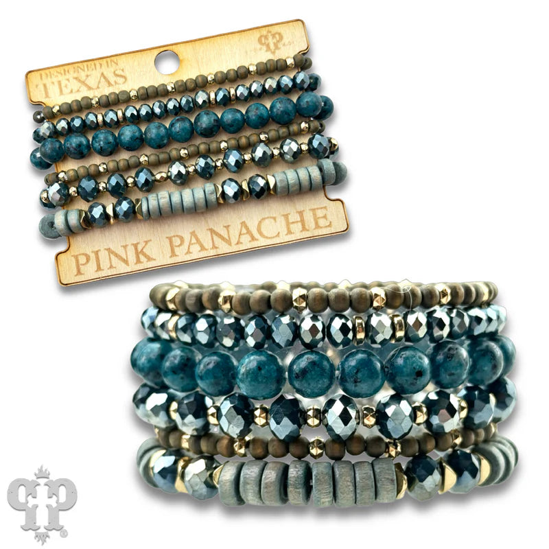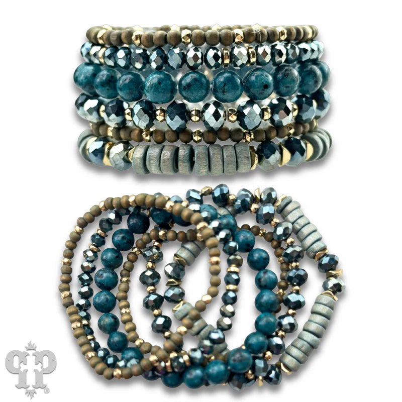 Natural textures and earthy tones set apart this artsy look bracelet. The set stretches for ease of wear.