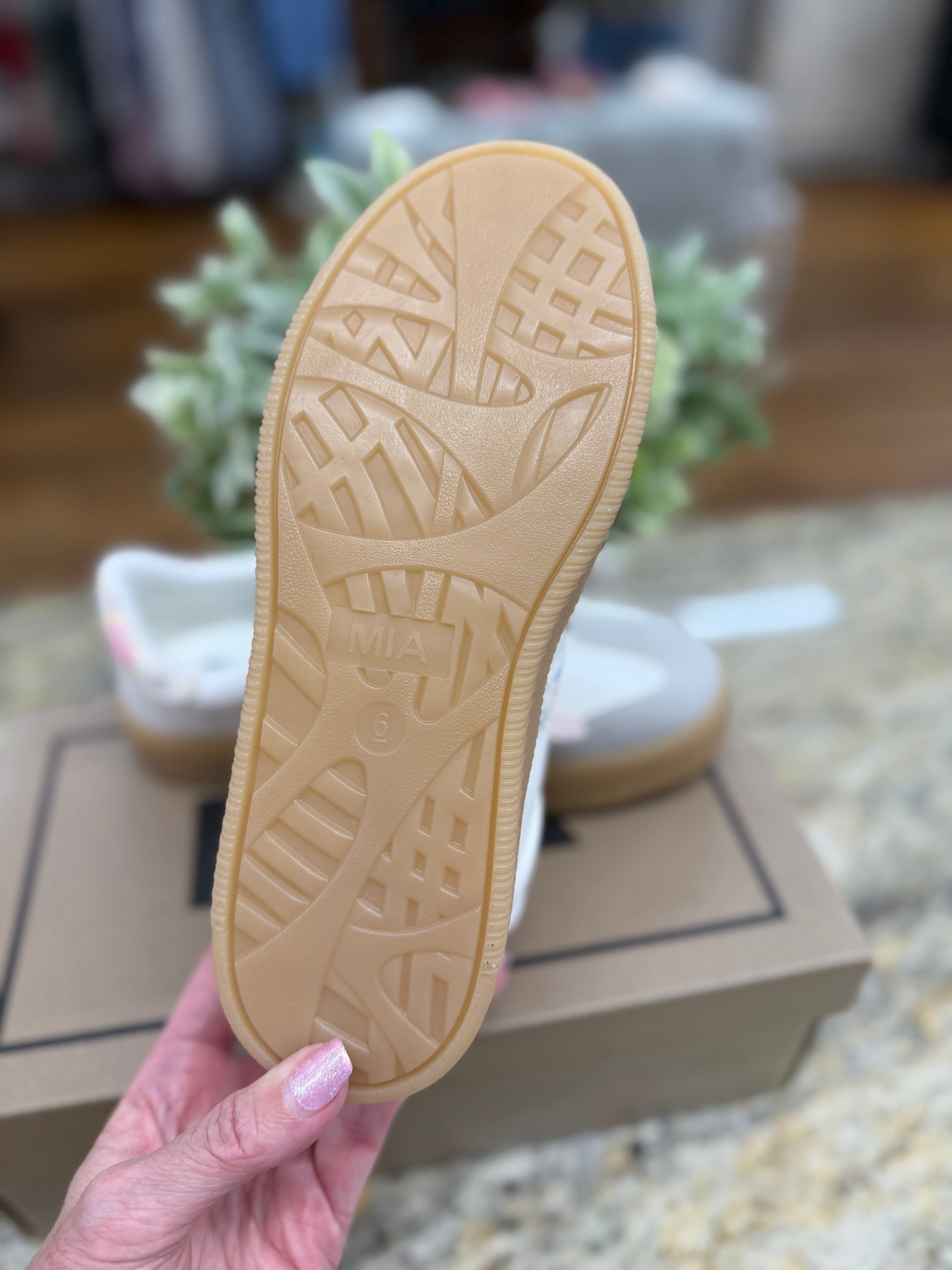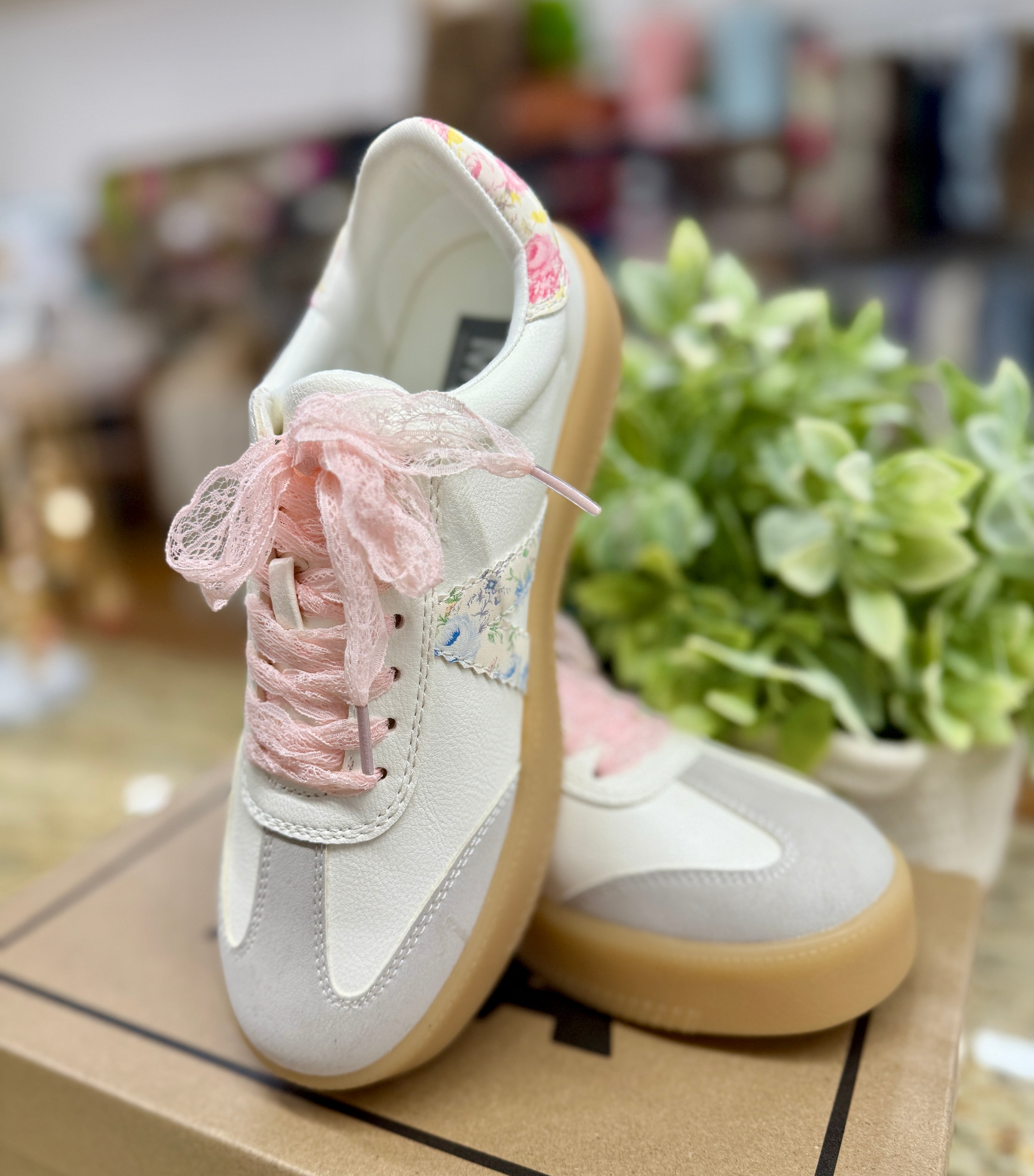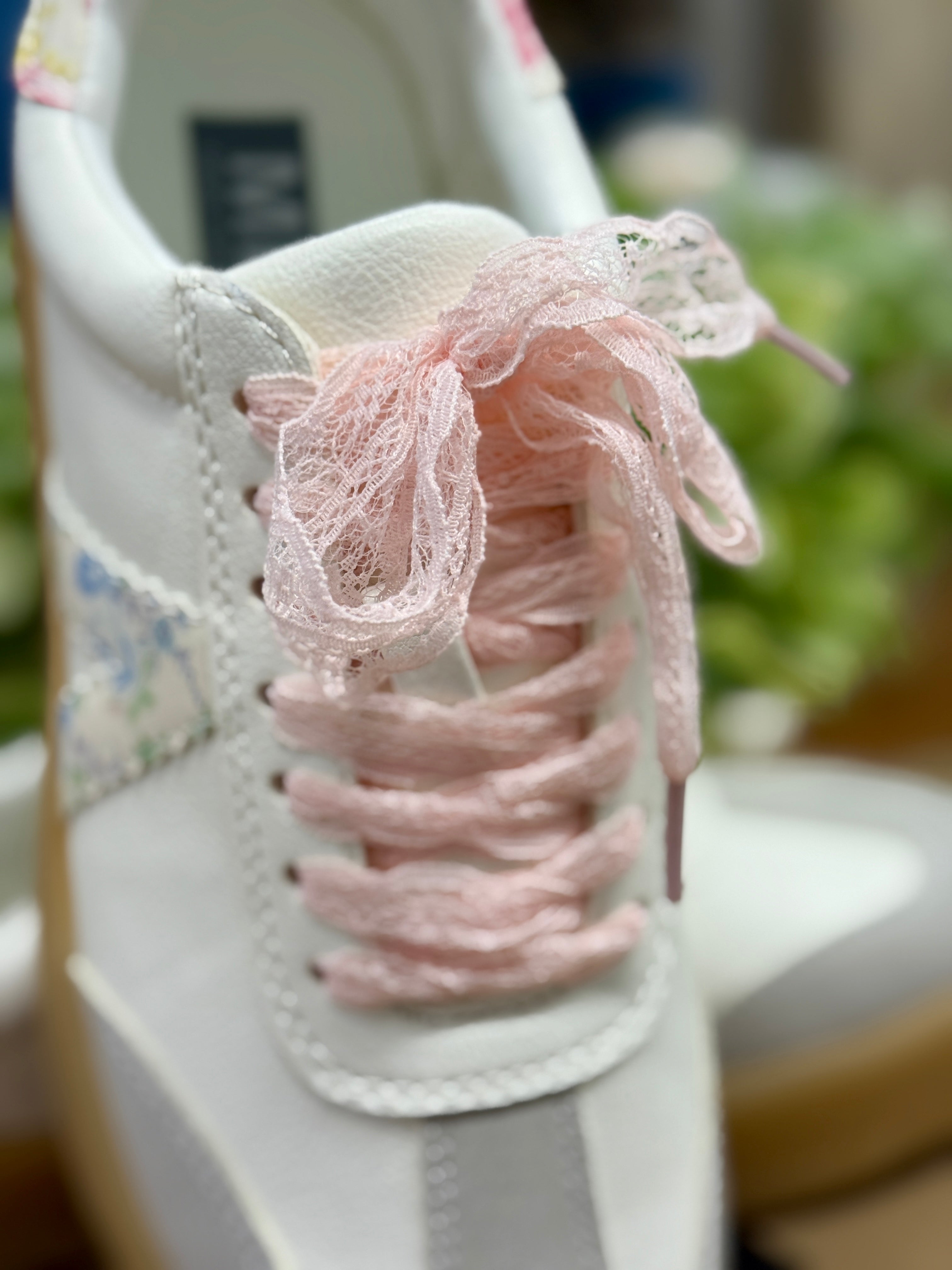The perfect casual sneaker! Neutral colors and a pretty floral stripe, feminine pink lace shoelaces have us wanting to show off these sneakers every time we step out!
